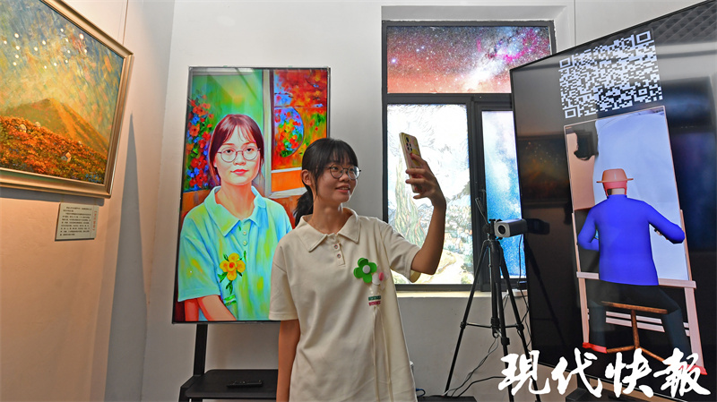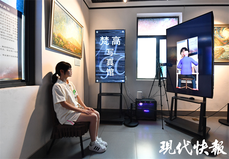 梵高的《星空》,是关于天文题材油画的艺术呈现。想让艺术大师梵高为你画一幅肖像画吗?在展览中就可以实现。在展厅的“梵高写真馆”里坐下看着摄像头,通过AI技术,不一会儿,一张梵高画风的肖像画便诞生了,新奇的艺术体验吸引了不少观众排队等候。