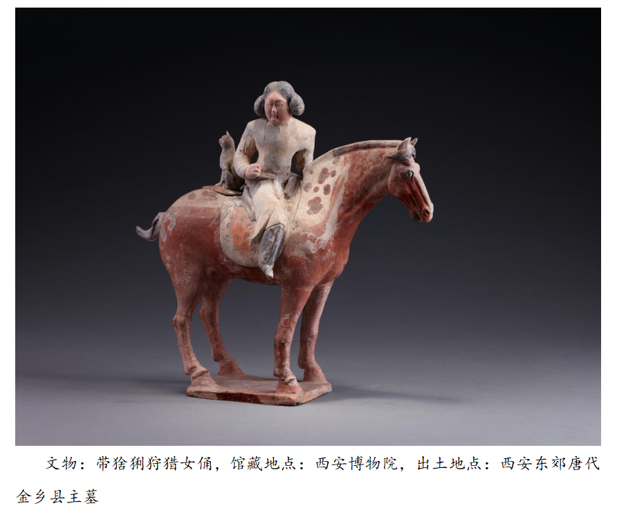 “女性虽然在狩猎活动中很少参与,但唐代确实女子的地位提高,而且女性参与的社会活动、激烈运动也是非常多的。不仅是壁画中、陶俑中有形象,古代诗词的描述中也有。比如杜甫《哀江头》诗中就曾描述宫女随皇帝胡服骑射这个情景。”他表示。