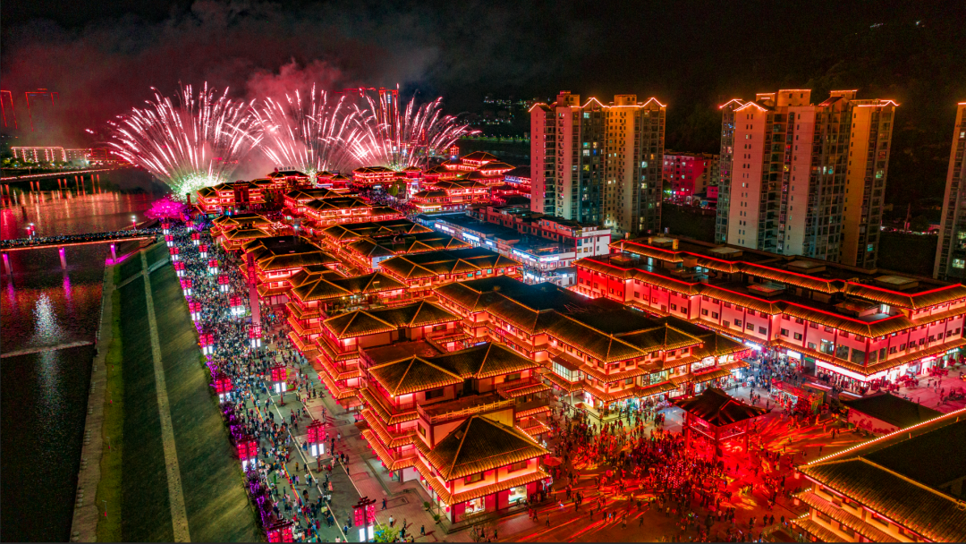 灯光璀璨,人头攒动,夜幕下升腾着的烟火气,让这座偏远山城迎来了前所未有的热气和人气。