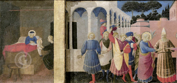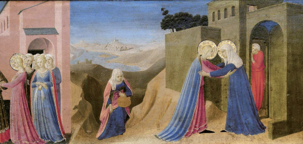 图6 安吉利科《圣母的婚礼和伊丽莎白的拜访》 约1434年,科尔托纳教区博物馆藏
