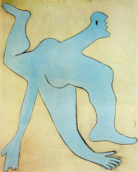 另一幅极具震撼力的马格里特作品《杂技演员的思想》(IdeasoftheAcrobat)——扭曲、重塑并混合了身体,悬挂在毕加索1929年作品《蓝色杂技演员》(ABlueAcrobat)旁边,呈现了毕加索与超现实主义的调情。这是一场天才之间的耀眼对比。毕加索那扭曲、变异的人体是怪诞的、英雄的,也是绝对真实的,因为他对人类形态的把握是与生俱来的。