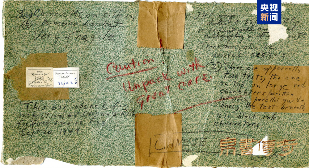 今年6月20日,帛书研究专家、美国芝加哥大学夏德安教授受委托,在青岛向中国文物主管部门移交了曾经用于盛装子弹库楚帛书第二卷和第三卷的盒盖。这个盒盖带有福格博物馆借存标签等信息,原由芝加哥大学图书馆保存,能够证明盒中文物自1946年9月16日起已借存于福格博物馆,是帛书在美国流转证据链的重要一环。