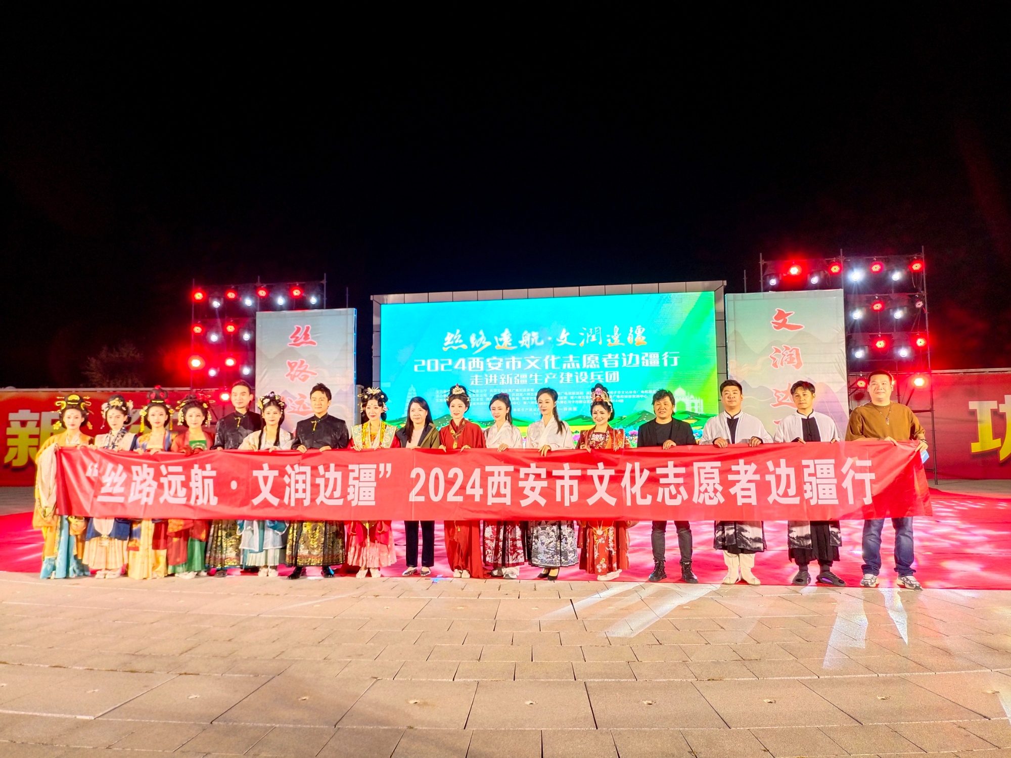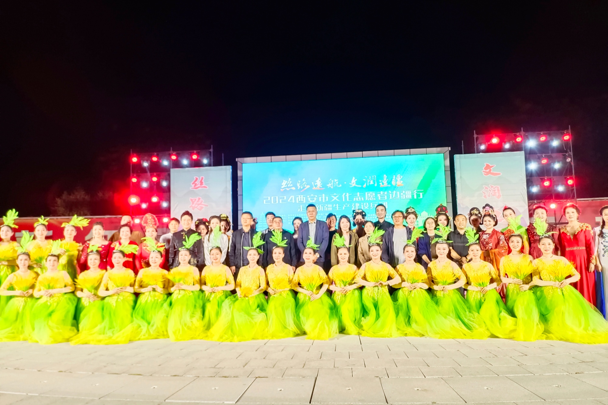 9月10日,2024年“丝路远航·文润边疆”暨“春雨工程”西安市文化志愿者边疆行活动在新疆生产建设兵团第八师一四四团人民公园精彩上演,为近千名团场党员干部、职工群众送上“文艺大餐”,为推进文化润疆及团场文旅事业高质量发展注入新活力。
