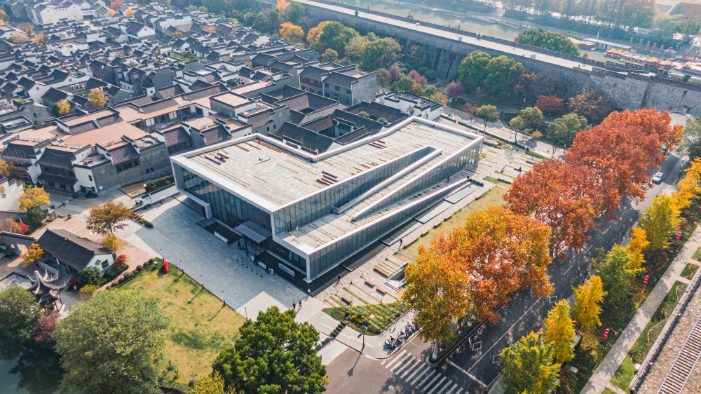 站在城墙看风景——南京中华门瓮城脚下,矗立着平面呈L形、错落有致的博物馆,青砖、树木如镜像般映在青灰色玻璃幕墙中;站在馆内看城墙——玻璃幕墙似乎从眼前“消失”了,古朴沧桑的城墙闯入视线,使人感觉身临其境。