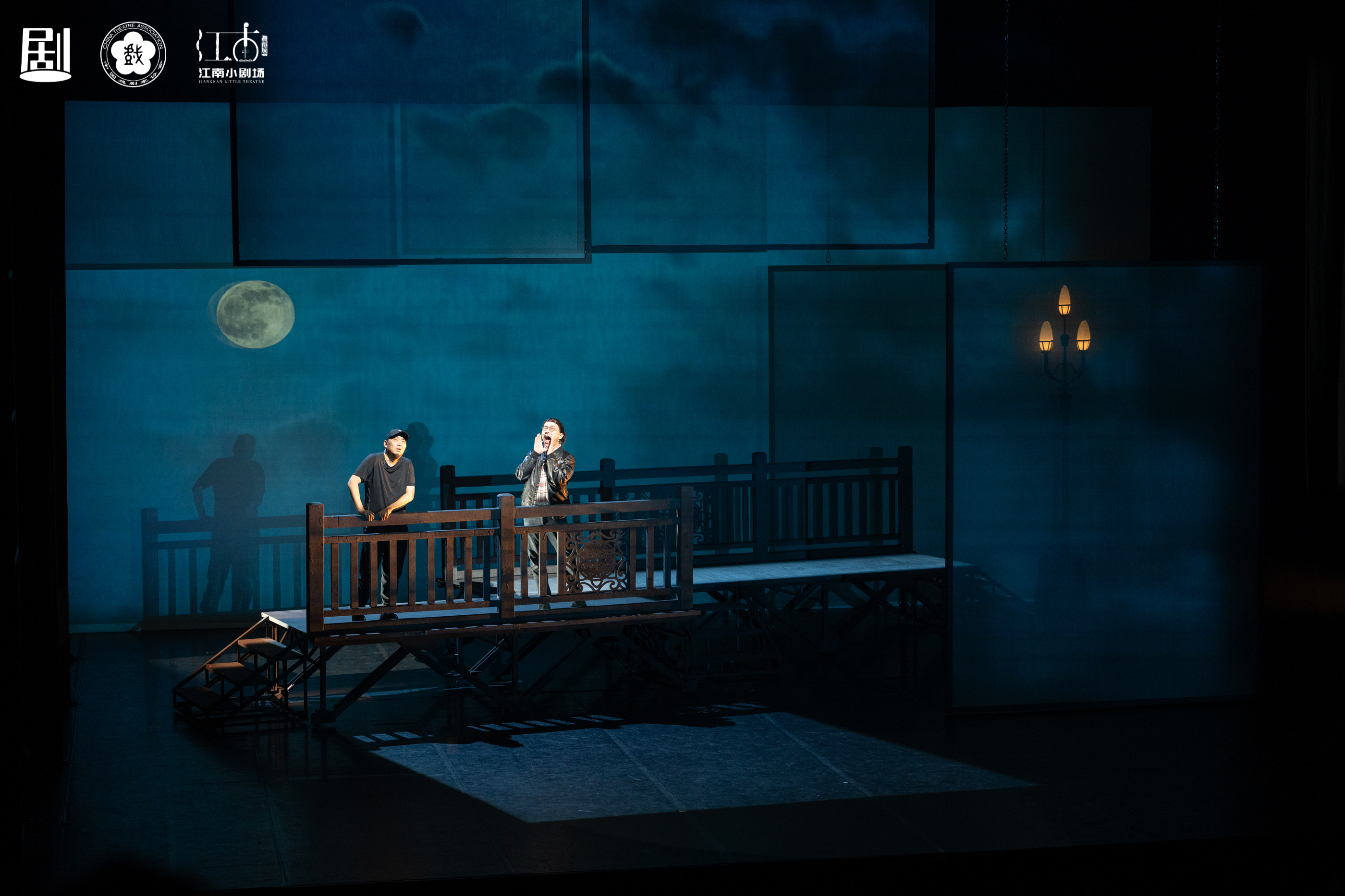 舞台上,一块纱幕成了不可或缺的创意元素。它不仅是物理空间巧妙的分隔,更是视觉叙事的关键媒介。通过在纱幕上投射影像,观众得以目睹大桥的繁忙景象,这一动态背景为舞台增添了生动与活力。