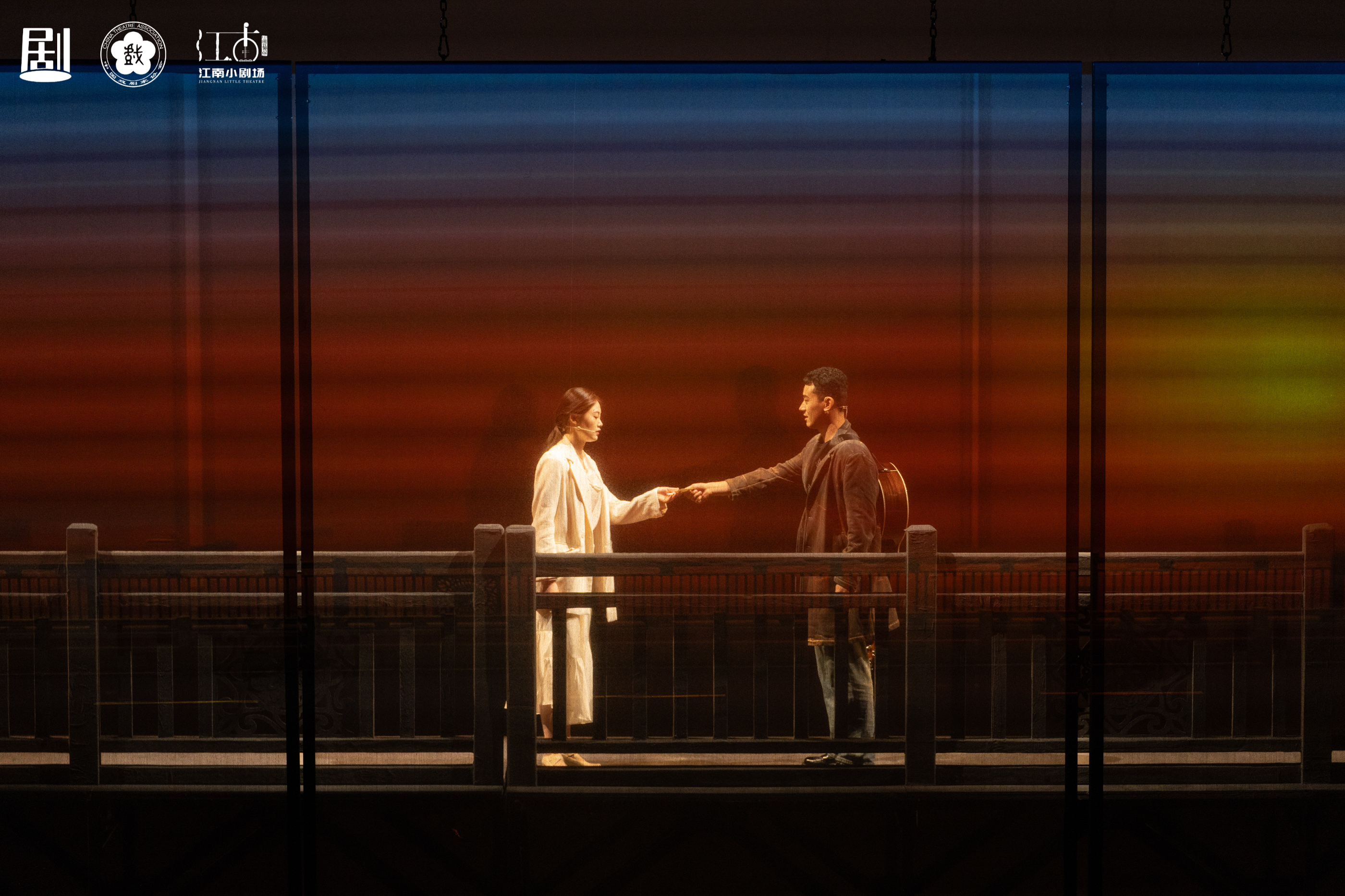 而当“桥三代”浩哥进行直播时,纱幕则化身为放大的手机屏幕,不仅呈现了剧中人物的采访片段,还展示了大桥新村的历史记忆与老物件,进一步拉近了观众与故事的距离。特别值得一提的是,当民谣歌手在大桥边举办演唱会时,纱幕更是转变为即时互动的大屏幕,实现观众与演员之间的交流,将整场演出推向了高潮。