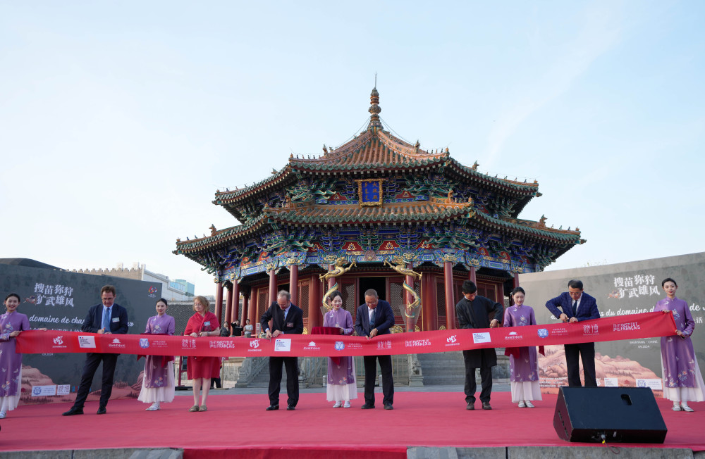 当日,沈阳故宫博物院和法兰西学院联合主办的“搜苗狝狩 犷武雄风——清《盛京围场全图》与满族人的渔猎生活”展览在沈阳故宫博物院开展。