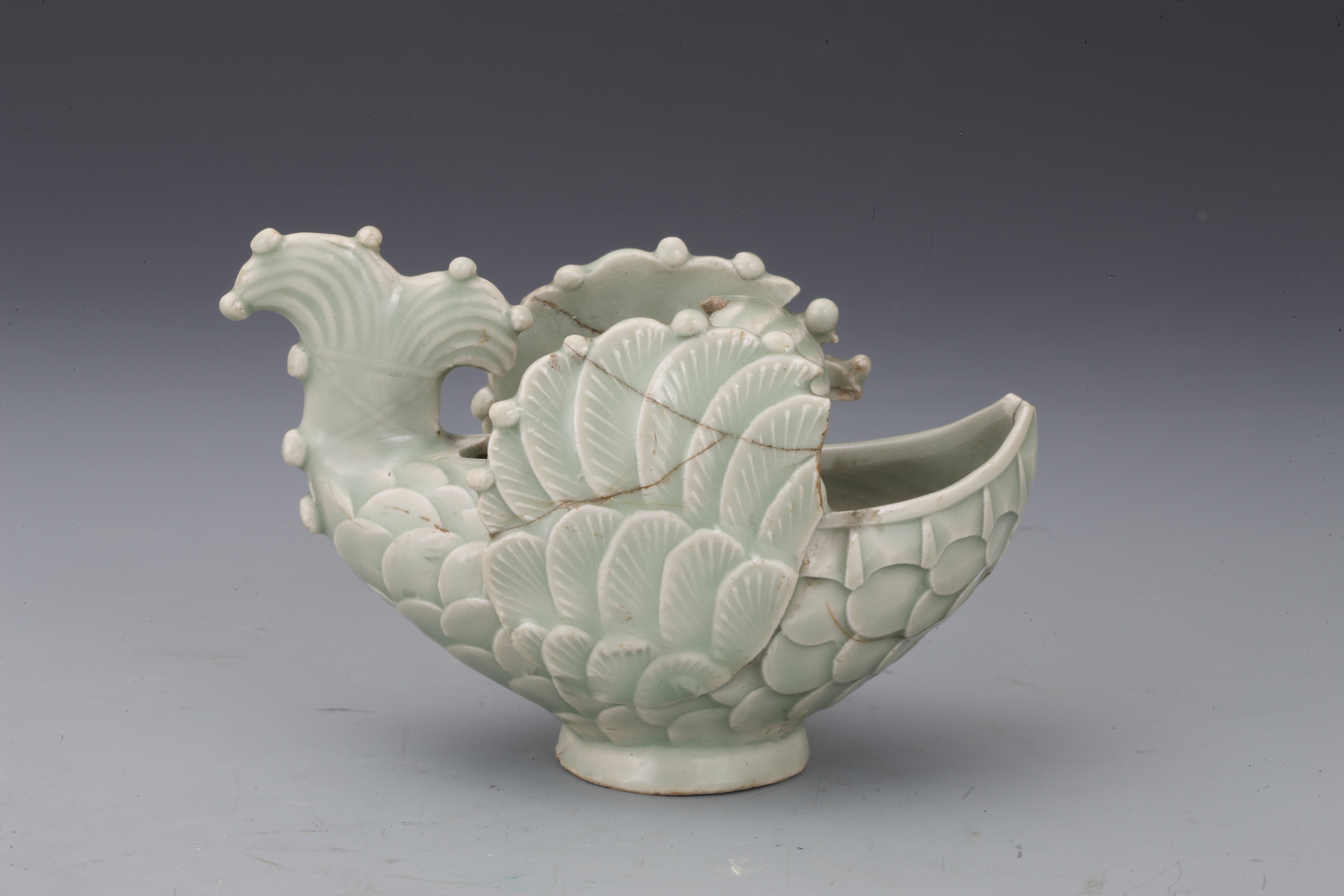 飞鱼形青瓷水盂,出土于辽墓的耀州窑精品,是契丹与中原地区经济文化交流的实物见证。