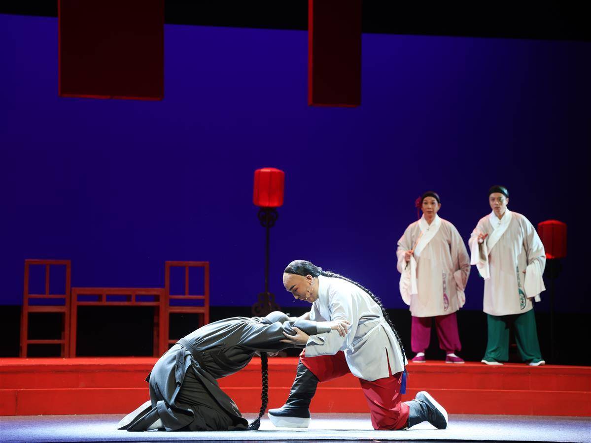 湖北日报讯(记者刘毅)四戏同缘,唱念做打,尽显一代宗师风流。9月29日晚,大型清装黄梅戏《传奇余三胜》在黄冈黄梅戏大剧院成功首演,赢得数百位来自省内外的专家和戏迷鼓掌叫好。