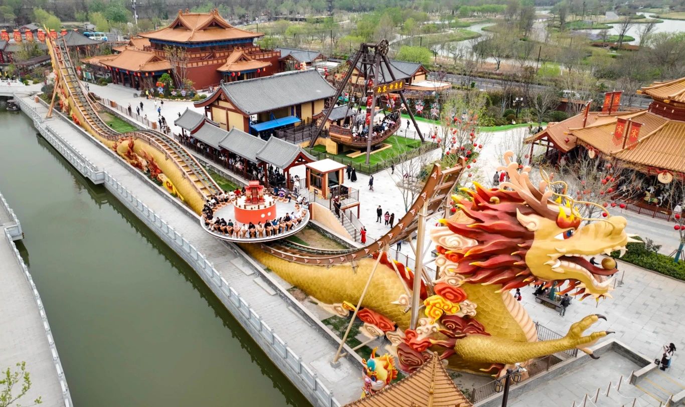 景区将宋文化与现代游乐巧妙结合创新打造出大宋·皇家乐园五大“中国风”游乐产品。将高科技融入“中国风”游乐项目中,带来更加沉浸的穿越体验。