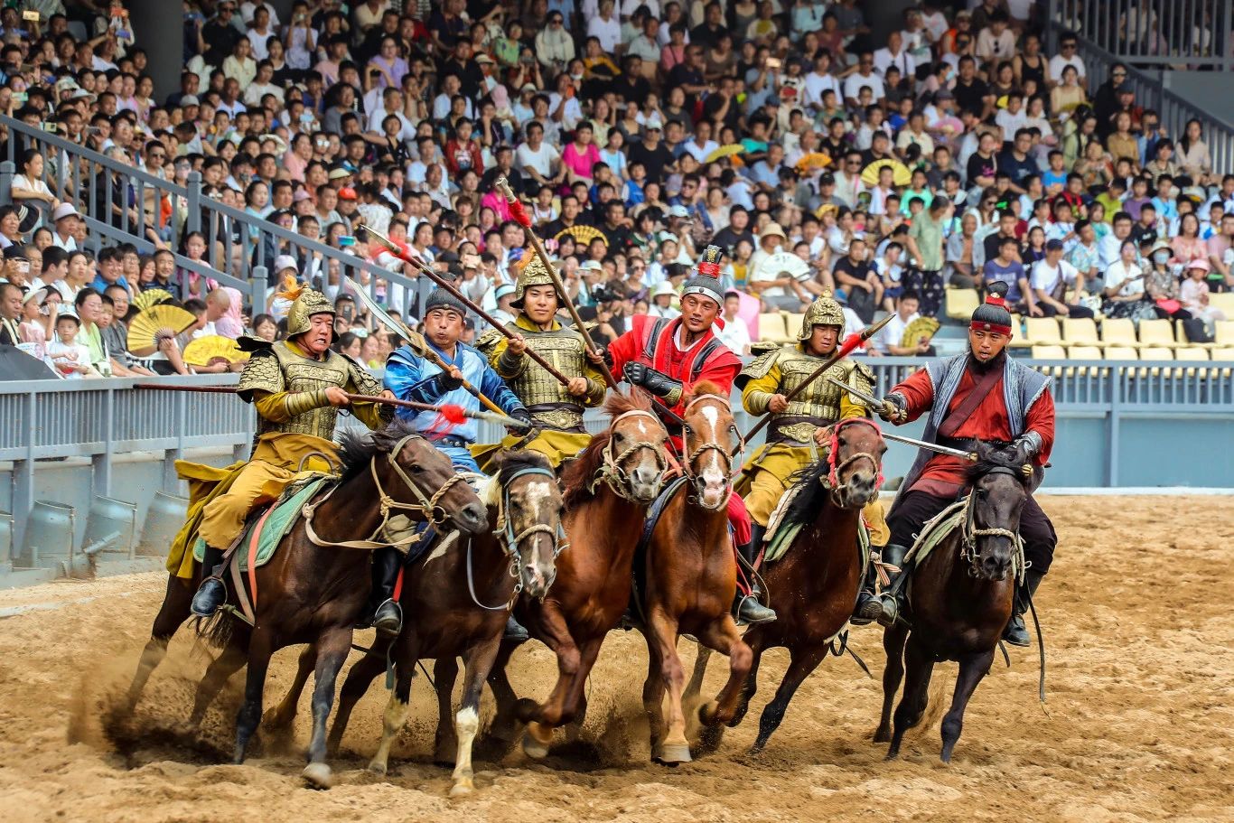 在大宋·皇家乐园中的大宋·校场,根据大宋名将岳飞的历史故事,打造了两项大型史诗级马战演出。《岳飞枪挑小梁王》《岳飞·郾城大捷》,分别在白天和晚间上演。