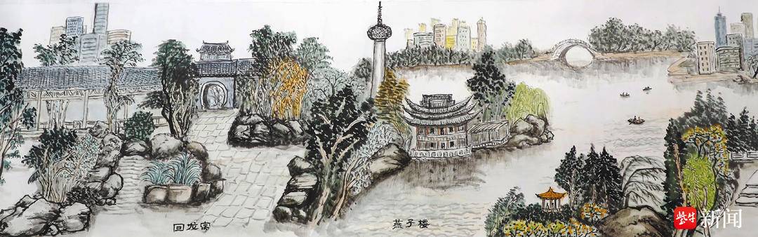 通过3个多月的辛勤创作,82岁的老人魏传义,满怀激情呈现了25米的山水长卷《大美徐州图》。在这幅长卷中,老人用充满激情的笔触,描绘了徐州近30个景点,表达对家乡徐州的热爱之情