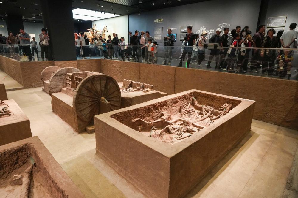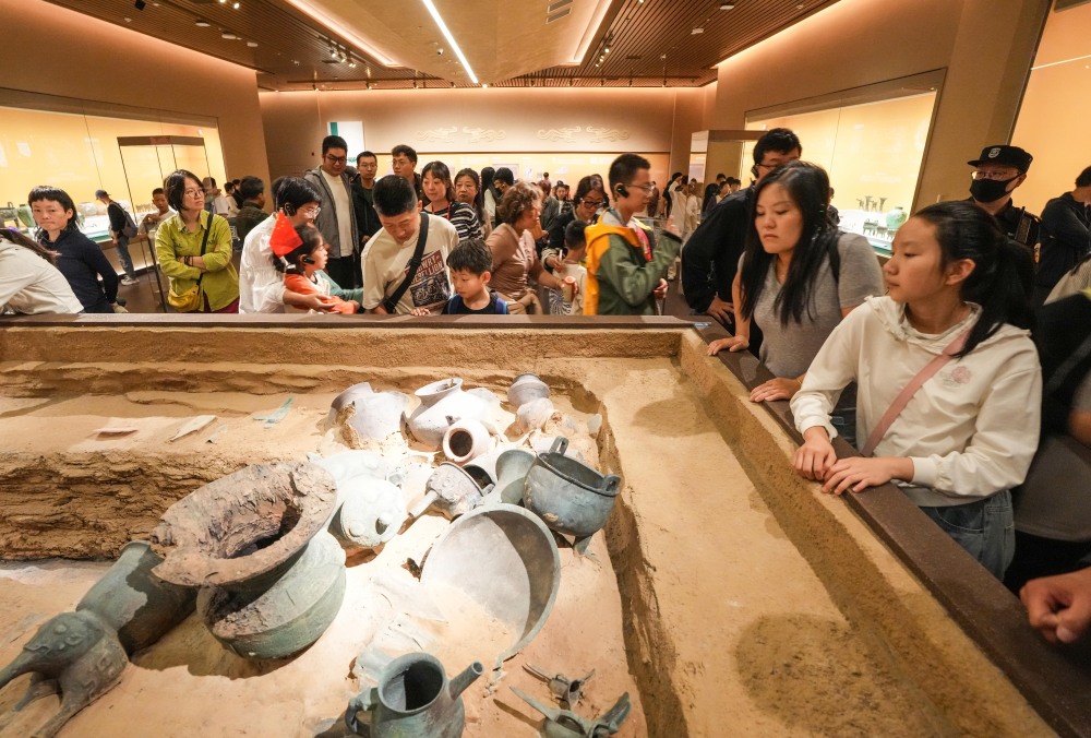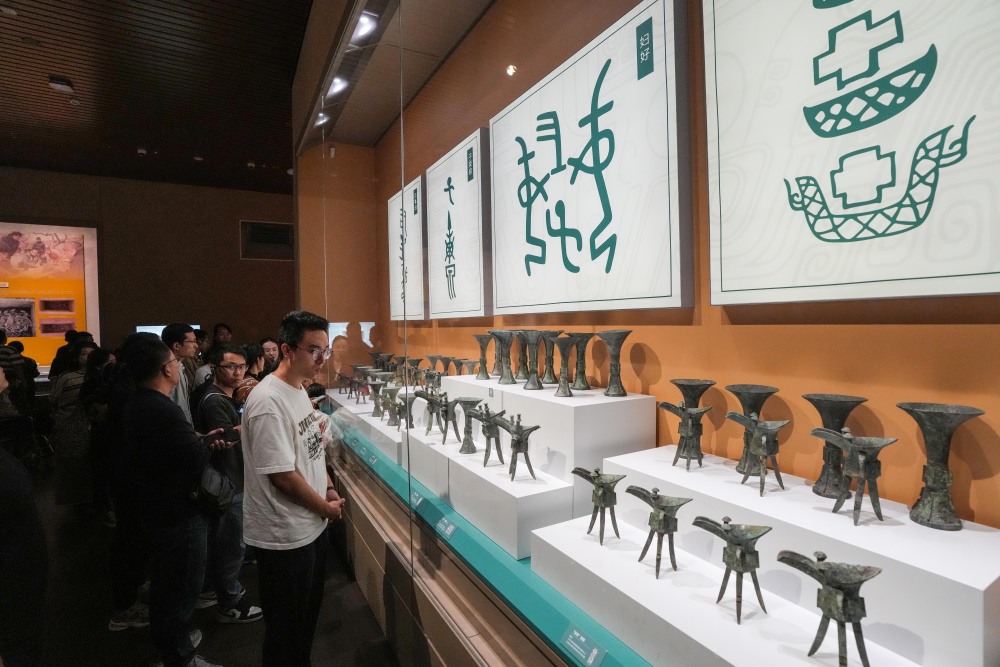 10月1日,游客在河南省安阳市殷墟博物馆新馆参观。新华社记者 陈晔华 摄