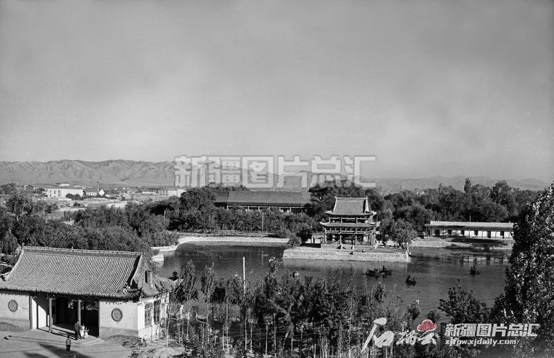 1964年,乌鲁木齐人民公园大门和湖心亭。宋士敬摄©新疆图片总汇版权所有