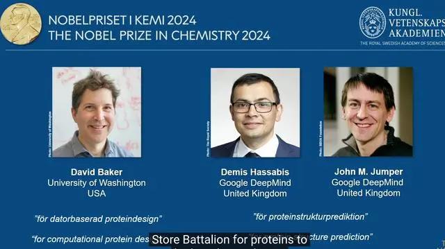 当地时间10月9日,瑞典皇家科学院宣布,将2024年诺贝尔化学奖授予大卫·贝克(David Baker)、戴米斯·哈萨比斯(Demis Hassabis)和约翰·江珀(John M.Jumper),以表彰他们在蛋白质设计和蛋白质结构预测领域作出的贡献。3名获奖者共获得1100万瑞典克朗(约合745万元人民币)奖金。
