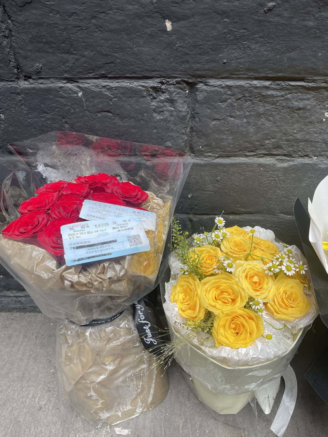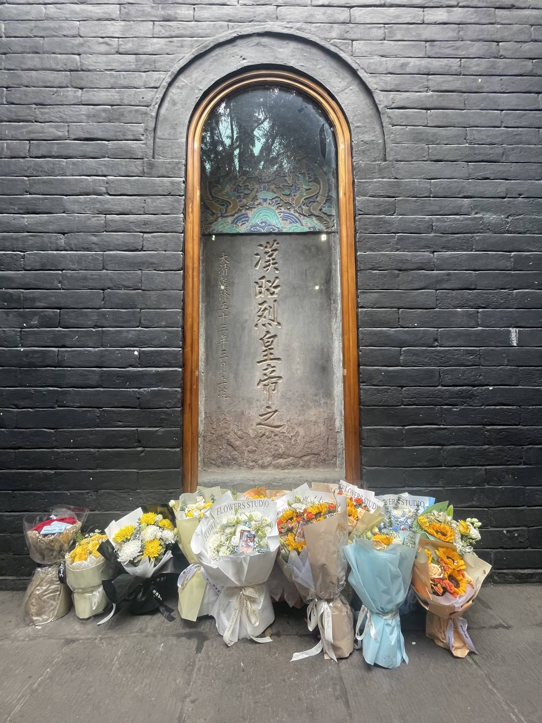 “汉昭烈皇帝之陵”碑下,游客留下的花束。