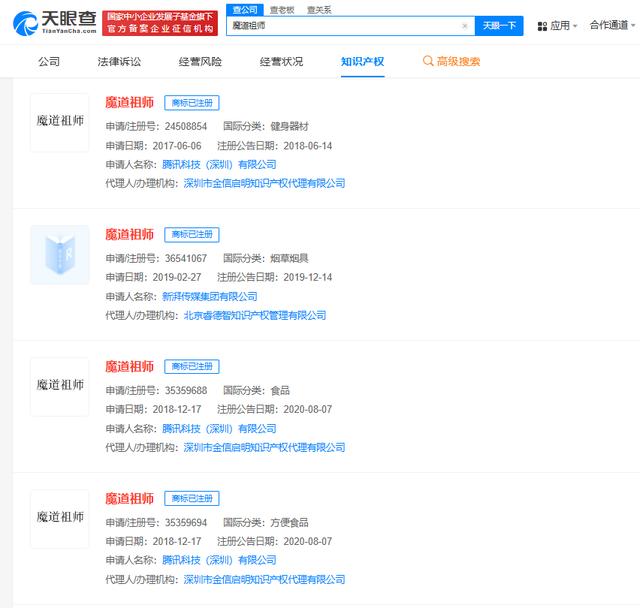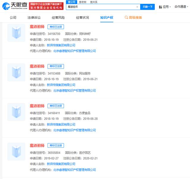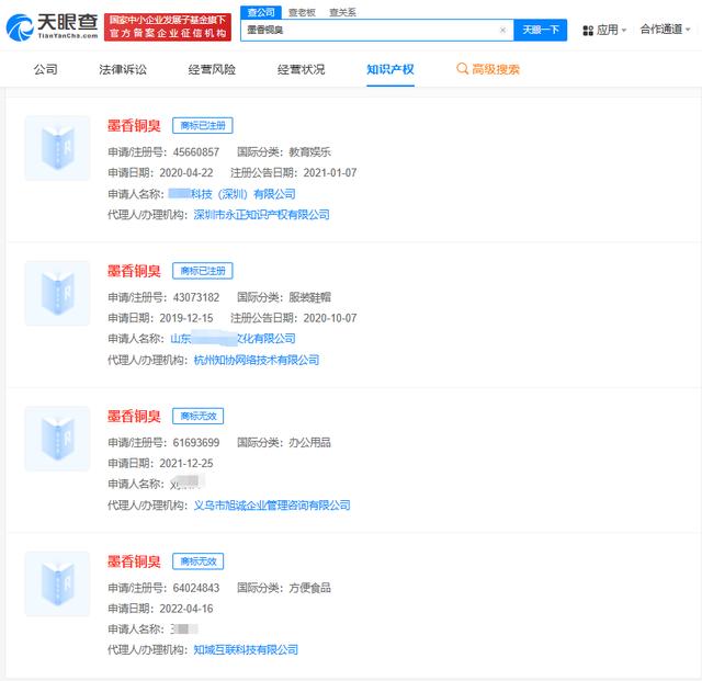 墨香铜臭商标遭抢注 魔道祖师已被注册商标