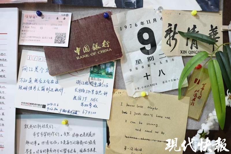 现代快报讯(记者 徐梦云)1976年11月的日历、2012年6月3日“蛟龙号”深海邮局开通纪念的明信片……近日,杭州滨江区一家二手书店,吸引了不少读者和网友前去打卡。有人冲着二手书店的10万册藏书量,有的冲着这面浪漫的旧物展示墙。“每一件旧物,都承载着一份独特的回忆。尤其是有些情书,虽然信纸已经泛黄了,但背后流露着真情实感,如果丢掉,这份真挚可能就永远埋没了。”书店店主赵青盟告诉现代快报记者。