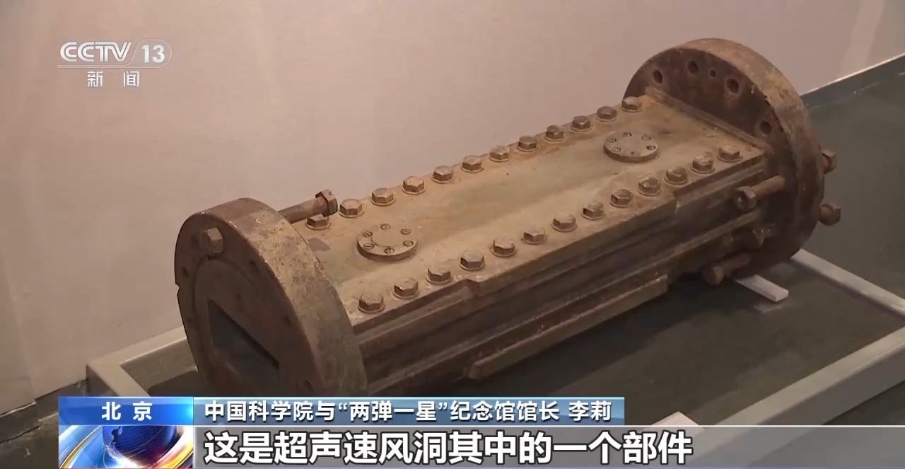 中国科学院与“两弹一星”纪念馆馆长 李莉:这是超声速风洞其中的一个部件,每一颗螺丝,每一颗铆钉都是我们的科学家自己研发的。这个实验当时是处于一个学习的状态,先把它模拟出来,模拟出来以后才有可能自己更新迭代,做成功以后,经过22代的更迭,我们现在是处于国际领先的状态。