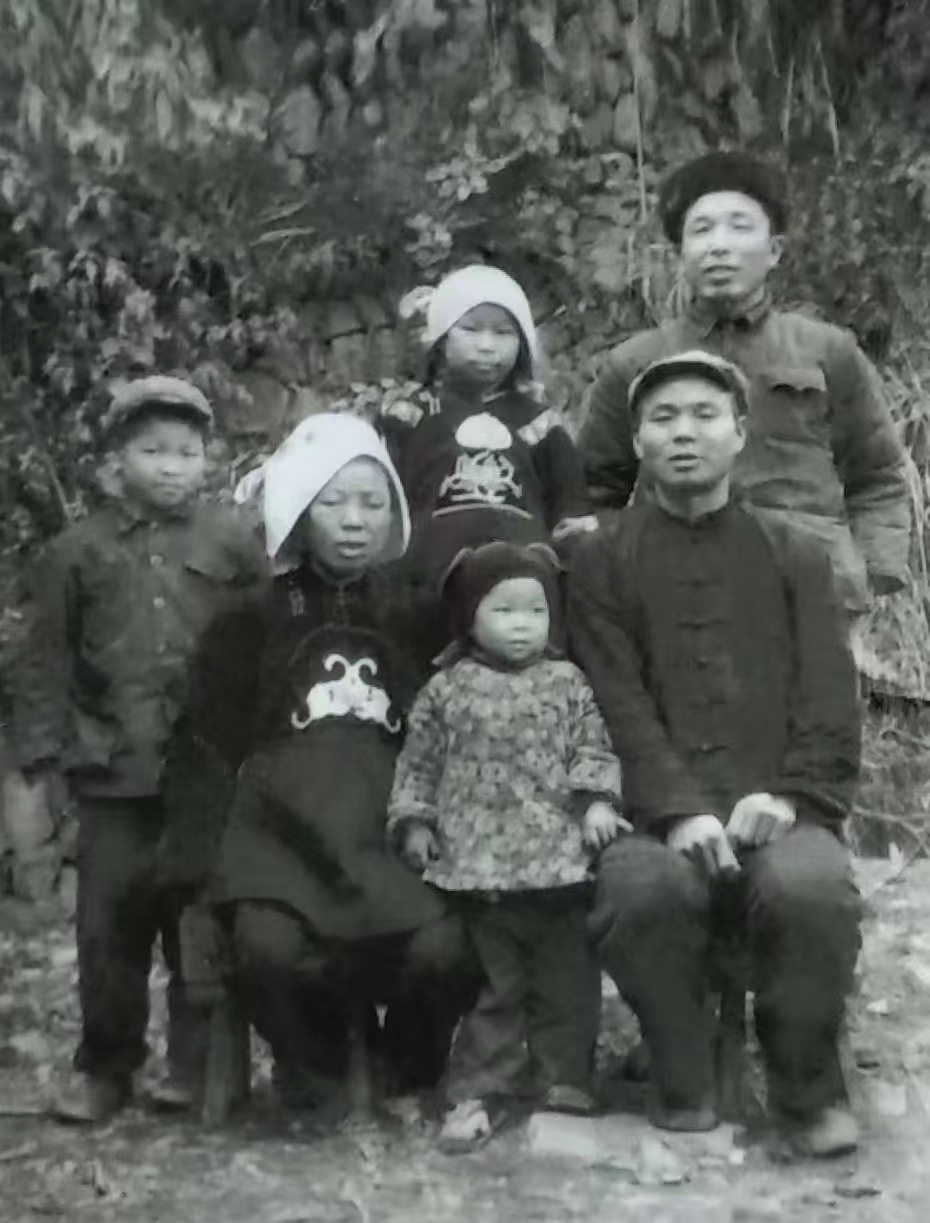 这是阿包人生中所照的第一张相,当时她大约5岁。左起:哥哥、妈妈、姐姐,阿包、爸爸、舅舅。
