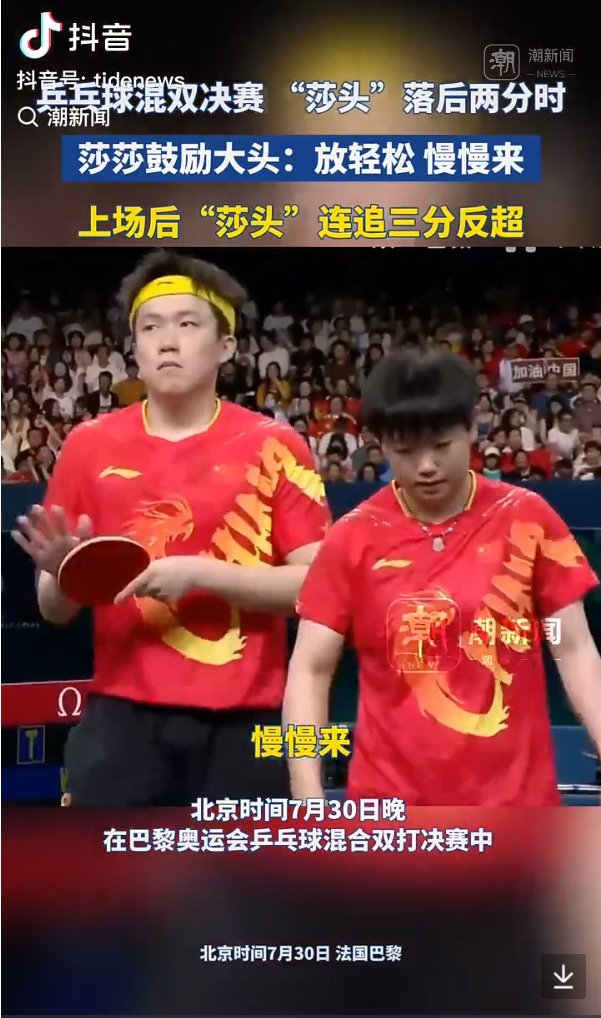 如今,再听到这首歌,人们脑海里会出现王楚钦、孙颖莎、全红婵、石智勇等运动员的身影,也会出现那个一直在坚持、在努力,且不放弃的自己。