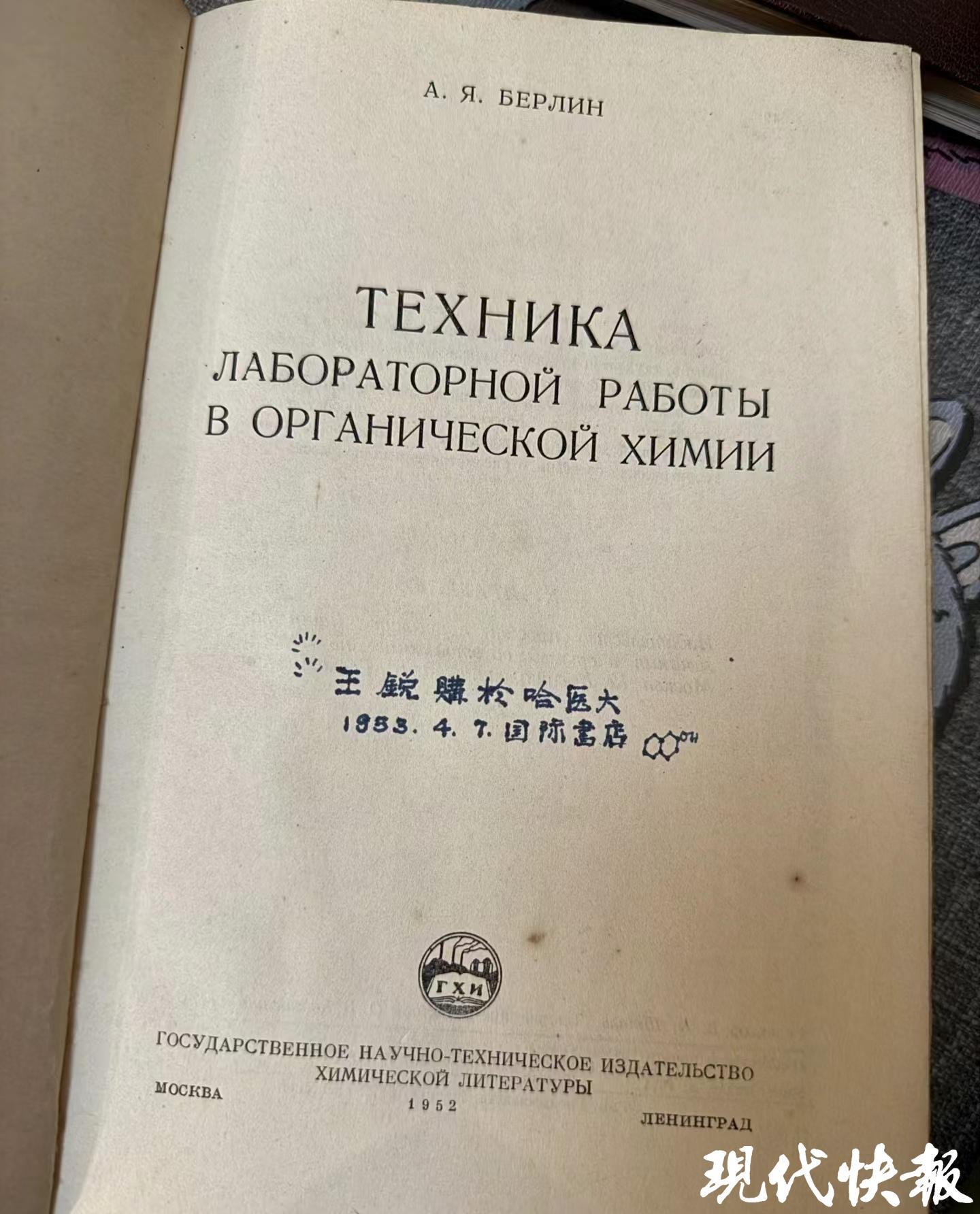 △俄文书籍,写有“王锐购于哈医大1953.4.7国际书店”