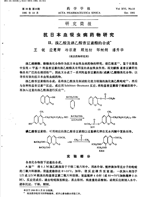 △1981年10月《药学学报》第16卷第10期王锐为第一作者