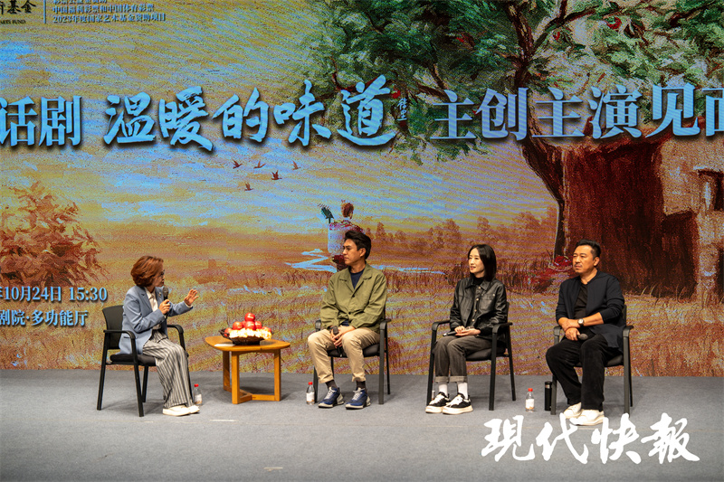 现代快报讯(记者李鸣/文钱念秋/摄)10月25—27日,中国煤矿文工团话剧《温暖的味道》即将在江苏大剧院·歌剧厅上演。演出前,10月24日下午,中国煤矿文工团团长、主演靳东,主演刘敏涛、张晞临参加话剧《温暖的味道》主创主演见面会,与观众分享台前幕后的精彩故事。