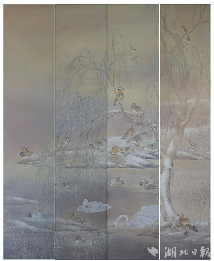 据悉,湖北入选“典藏作品”为黄勇的《清秋月影》(湖北省国画院)、陈亮宇的《午后》(湖北省国画院)、张闻的《雪霁柳汀岸》;“收藏作品”为张春汉的《拖觉晨晓》(湖北省国画院);“入选作品”为郭晓宾的《青溪演漾》、李胜利的《盛世蕉阳》(湖北省国画院)、吴会军的《墨染溪岸》。