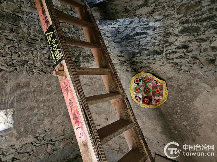 可以通过木梯登上房顶。(中国台湾网记者李宁摄)