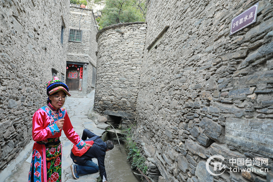羌寨内拥有户户相连的地下水网。(中国台湾网记者李宁摄)