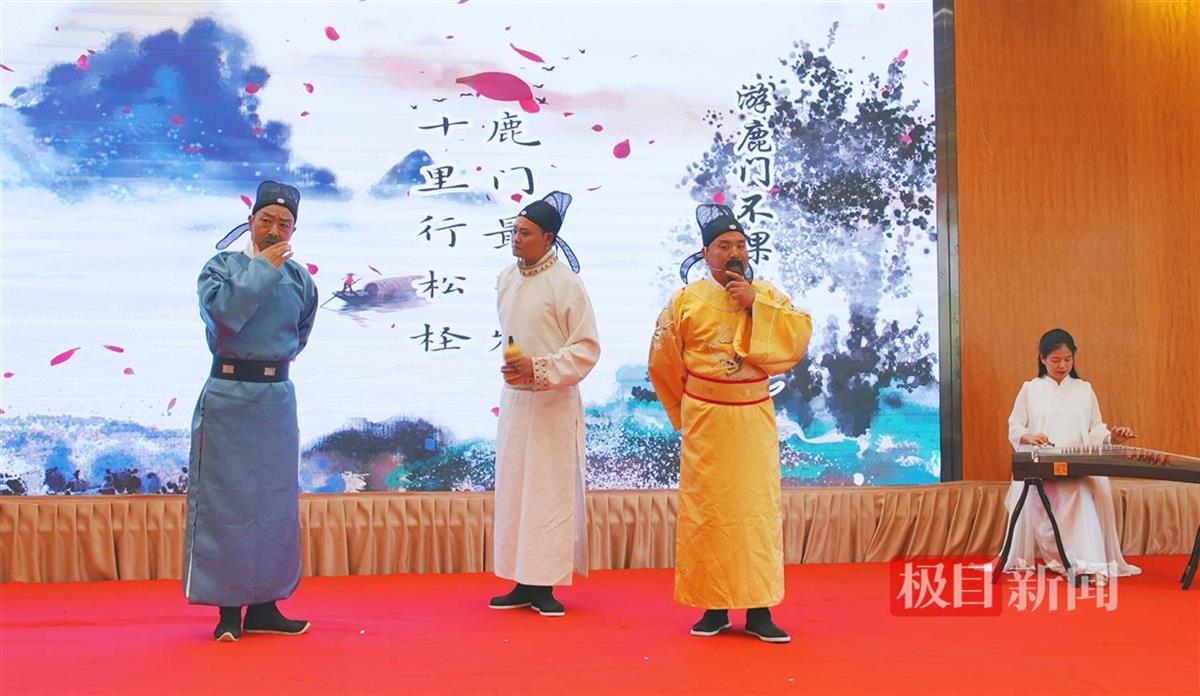 台上,在悠扬的古乐声中,诗人孟浩然、李白、王维“穿越”到现场,赏花饮酒、吟诗作对,以“诗词”视角,与1300年后的人们话襄州“古今”,诵读孟浩然的名篇《春晓》;台下,人们背诵“花间一壶酒,独酌无相亲”“空山新雨后,天气晚来秋”“人事有代谢,往来成古今”……