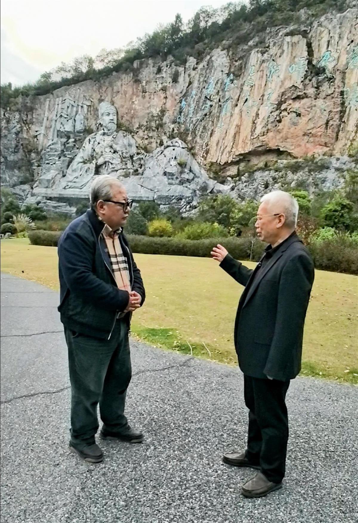 吉狄马加与刘阳在孟浩然的摩崖石刻下