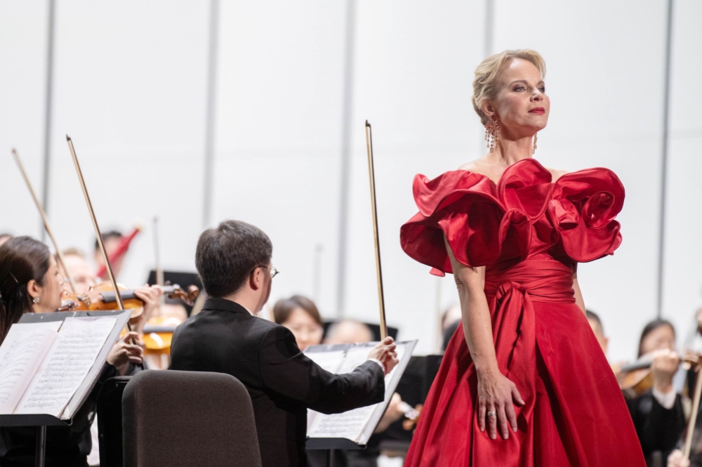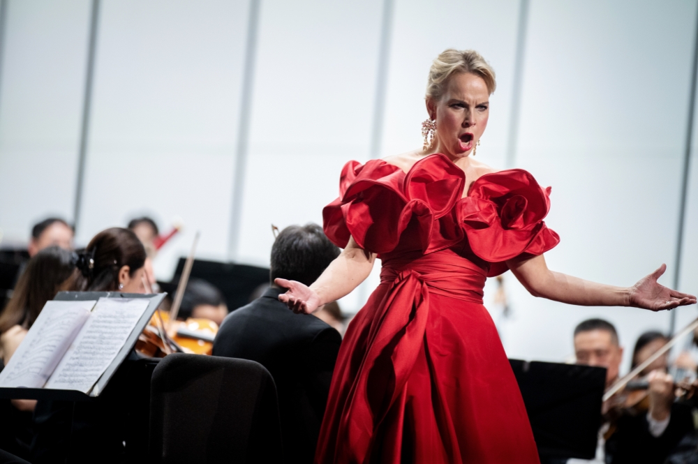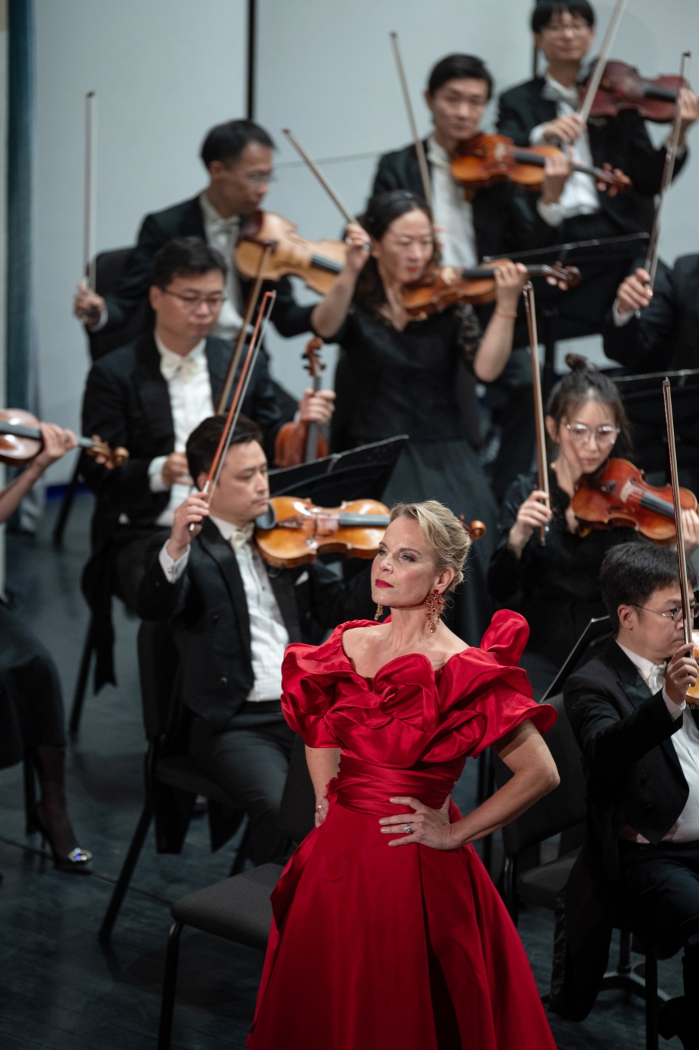 音乐会上半场具有强烈的民族气息和戏剧性。《奥尔良少女》《参孙与达丽拉》《萨巴女王》……嘉兰莎连续带来柴科夫斯基、圣-桑、古诺等三位作曲家的歌剧选段,歌声婉转动人,充满戏剧张力。