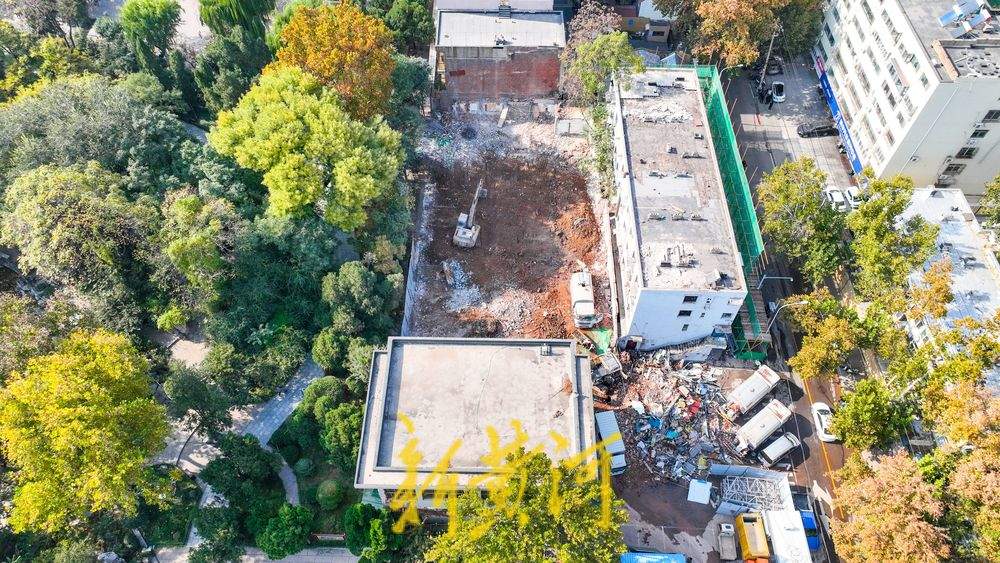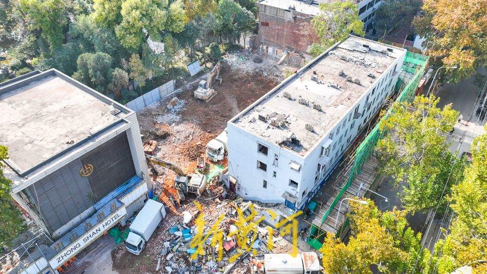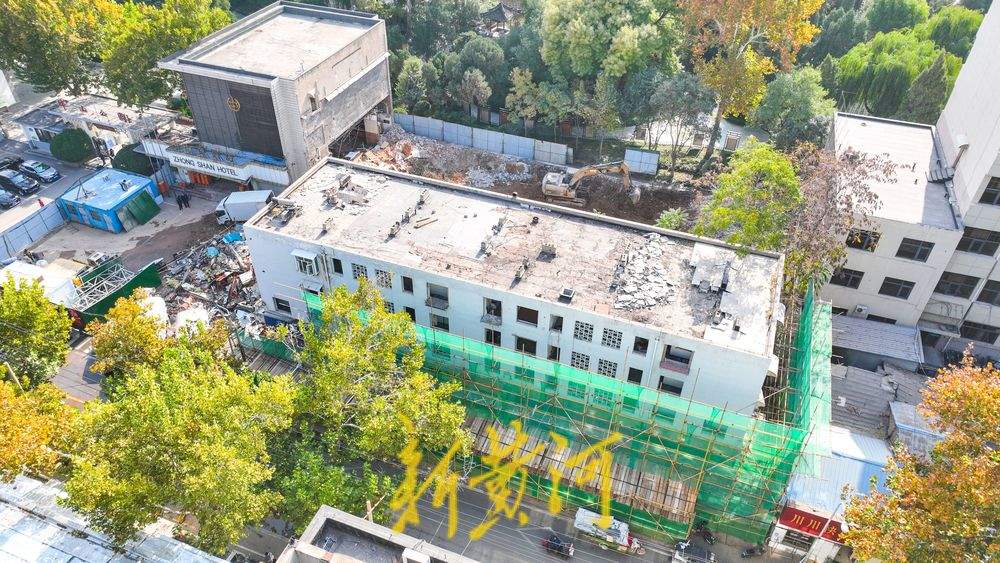 11月7日,在位于济南老商埠的中山公园北门西侧,新黄河记者看到,与公园一墙之隔的原中山大酒店主楼和部分商铺已经拆除,北邻的居民楼临街一侧安装了防护网,下一步也将整体拆除。中山公园北门西侧多座建筑从今年6月开始纳入了征收范围,随着住户搬离,拆迁施工全面展开。按照规划,拆迁区域将用于建设济南开埠博物馆,该项目总建筑面积约为3700平方米,其中地上建筑面积约为3400平方米,地下建筑面积约为300平方米。