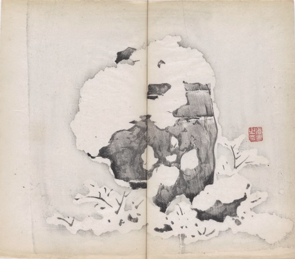 宣石作为观赏石种,最早有明确记载的是明代崇祯年间著名园艺家计成《园冶》一书,首次介绍了宣石的形貌特征:“宣石产于宁国县所属,其色洁白,多于赤土积渍,须用刷洗,才见其质。或梅雨天瓦沟下水,冲尽土色。惟斯石应旧,逾旧逾白,俨如雪山也。一种名‘马牙宜’,可置几案。”比《园冶》成书时间晚两年的南京胡正言辑选《十竹斋石谱》中,也有两幅宣石的图绘和咏题。
