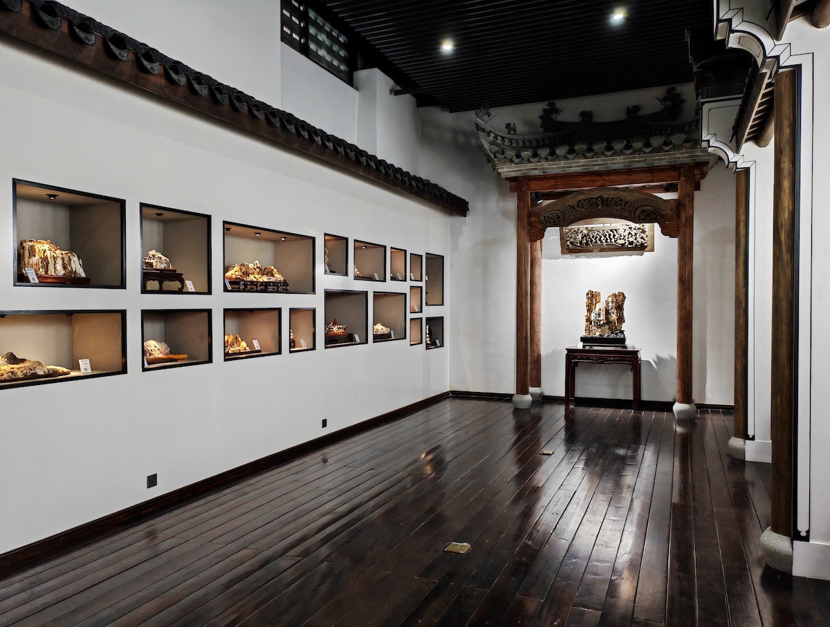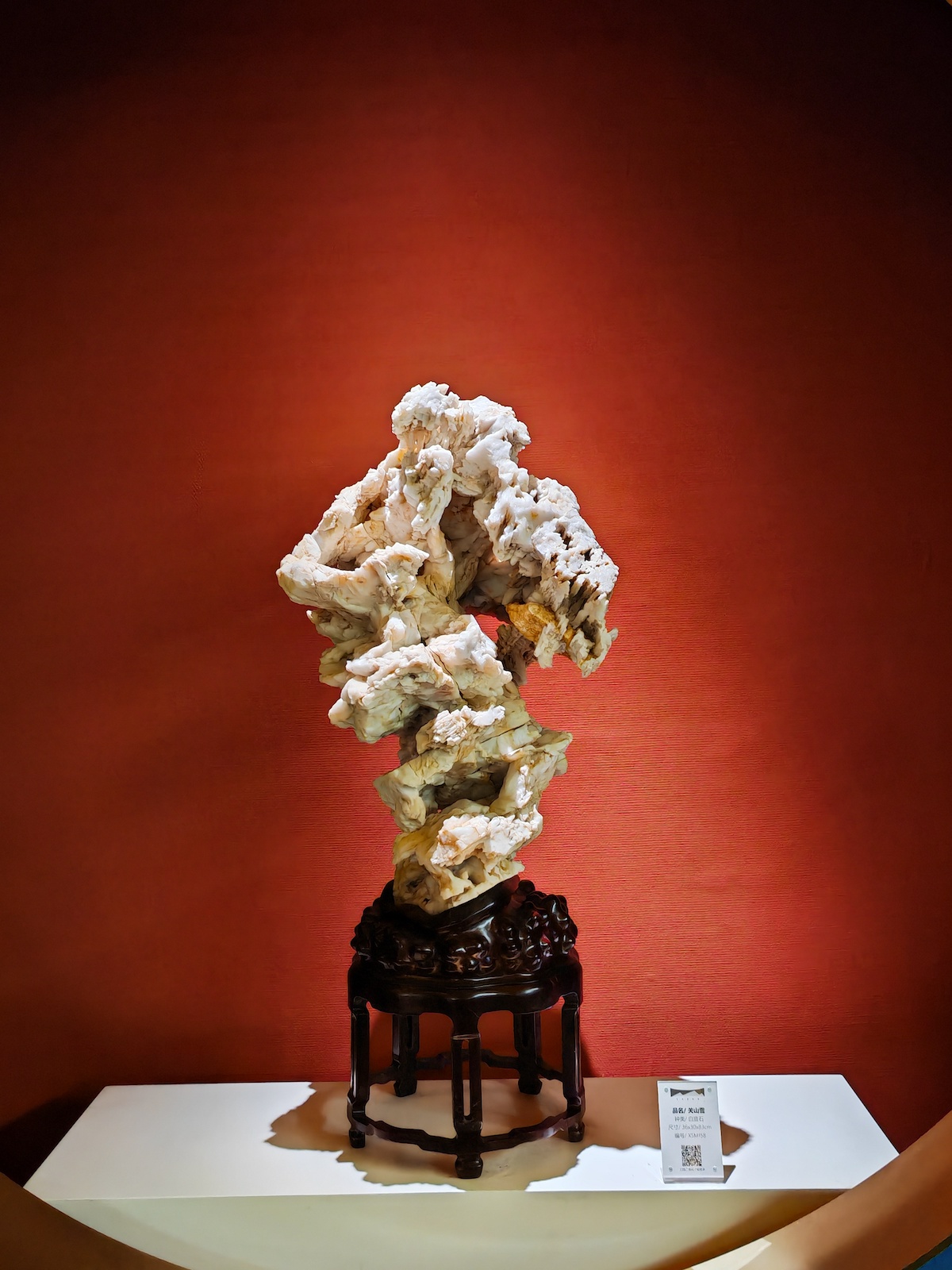萧瑟秋风今又是,换了人间。九十年代以后,随着各地赏石热的兴起,宁国宣石产地又出现了一轮新的开发热潮,不断有新品、精品问世,名石重光。2018年8月,宁国著名企业家、藏石家张金龙先生开始筹建“宣石博物馆”,经过六年建设,一个占地三十亩宣石博物馆已经落成。博物馆主体建筑为四层结构,常设展览叙事分“惟寿孔延”“江南之宣”“白尚玄玄”“世具尔瞻”“谛造亿千”五个单元,其中设有“文心缔密”“雪色云根”“物用乃广”“寻玩者蕃”“雪胎梅骨”“仙寿恒昌”“海外扬名”“当代重光”八大展柜,以及“拜石厅”“《十竹斋》厅”“《园冶》厅”“雨公厅”“《红楼梦》厅”“香雪殿厅”“扬州名园厅”七个专厅,荟萃了古今三百方宣石名品,通过大量实物、图片、装置等形式,以诗词歌赋、书画、拓片、影印等多种方式对藏品进行解读,从不同角度展示宣石的历史、美学和应用价值。