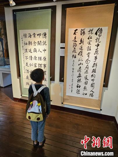 中新网苗栗11月9日电 (记者 路梅)为纪念台湾光复79周年与孙中山先生诞辰158周年,台湾辜金良文化基金会9日在苗栗县西湖乡吴浊流艺文馆举办“宝岛情——两岸名家书画展”,集中展示两岸书画家用中国传统书法艺术表现台湾先贤爱国诗篇的优秀作品。
