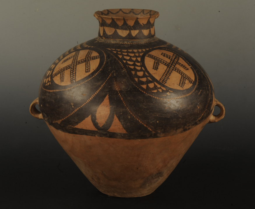 四圈漩涡纹彩陶双耳罐。(临洮县博物馆供图)