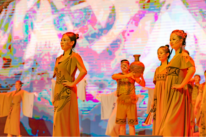 十几名演员身着定制宽袍,走上前台,展示衣服上的马家窑文化特色纹饰,甫一登场,现场观众就报以热烈掌声,情景舞蹈《再现马家窑》获得观众认可。