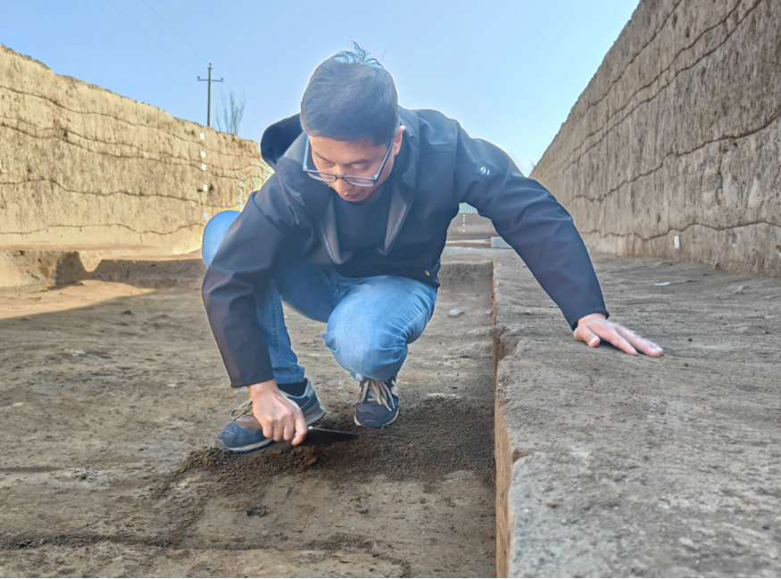 为了在一层层浮土下找到“蛛丝马迹”,赵志刚练就得眼神更尖、心思更细、更能耐得住性子。一面一人高的土坡,在赵志刚眼里,可能蕴藏着多个文化层的沧海桑田。赵志刚走到一个断面前,左看右看,拿起铲子向表面土层刮去。