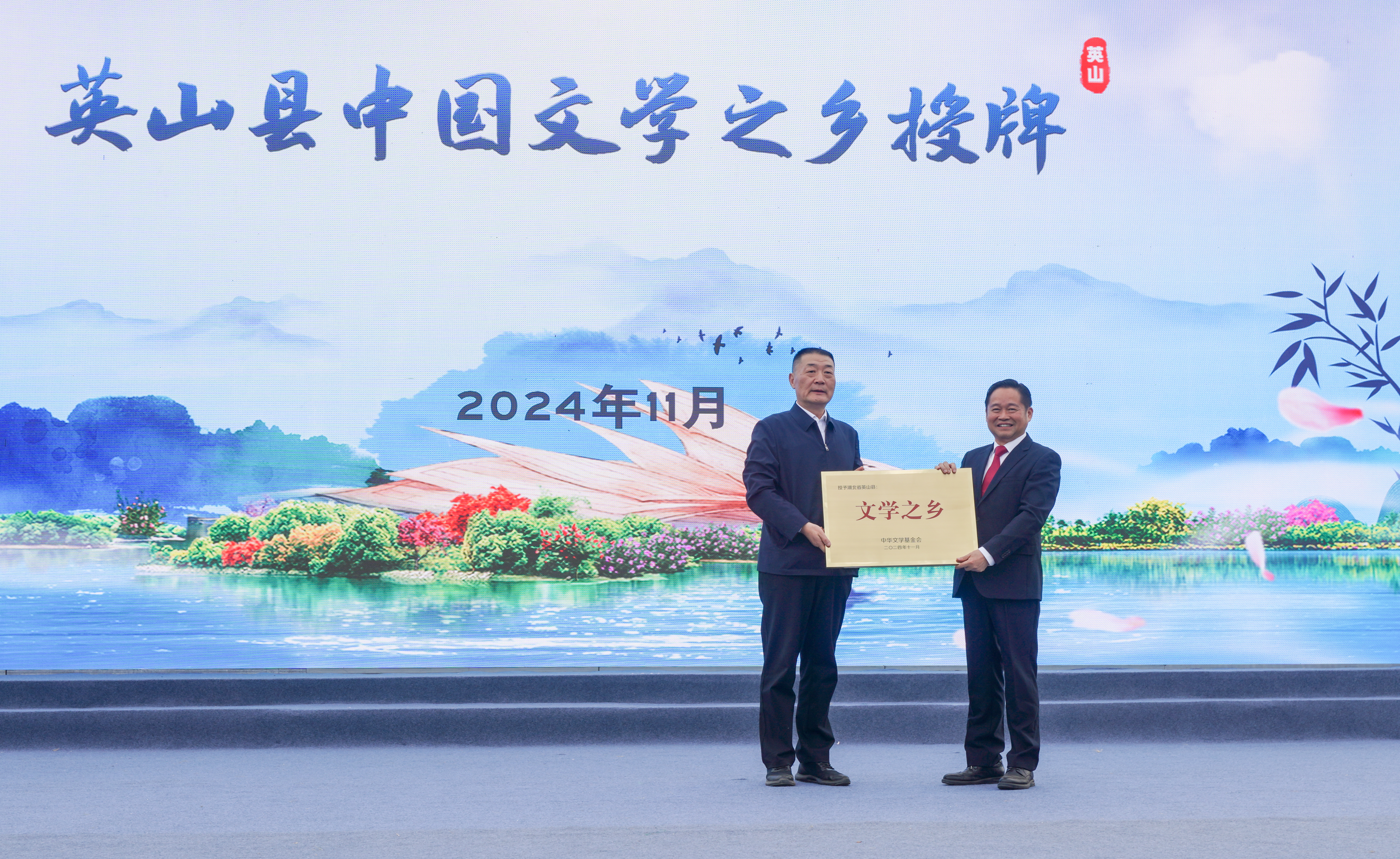 湖北日报农村版讯(记者吕博林、通讯员吴滕钰、肖熠)中国好空气,英山森呼吸。“英山县是文学创作的沃土。”11月9日,中国作家协会副主席、中国作家协会军事文学委员会主任、中华文学基金会理事长徐贵祥向英山县委书记郑光文授予中国“文学之乡”牌匾。至此,英山成为湖北首个国家级“文学之乡”。