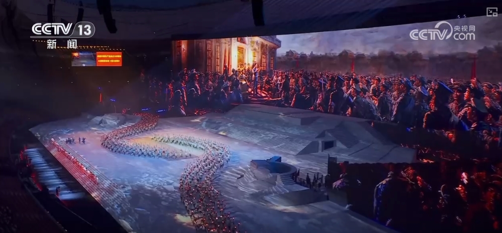 中央新影集团副总经理、电影《伟大征程》总制片人朱勤效介绍,让观众坐在电影院里能够身临其境地就像在鸟巢里观看演出一样,让大的叙事和大的宏观场面与个人的情感、演员的表情通过中近景拍摄,包括绿幕的拍摄来互相衬托。通过历史和现实的结合,让观众在电影院里亲身感受到没有共产党就没有新中国。