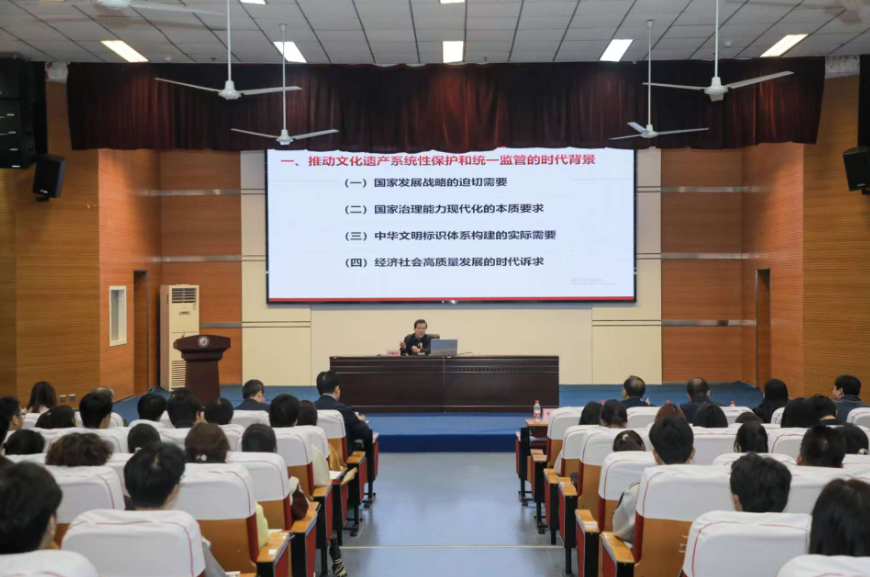 讲座中,李颖科以《多措并举推动文化遗产系统性保护和统一监管》为题,深刻剖析了文化遗产系统性保护和统一监管的时代背景、重要意义、主要内涵、目标任务和实现路径,为师生们有针对性地学习和工作提供了思路和策略。