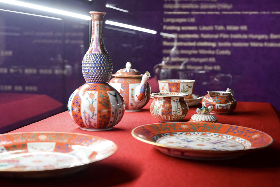 其中,一套带有“格德勒”图案的瓷杯和瓷碟格外引人注目。这套瓷器是19世纪70年代弗朗茨·约瑟夫送给妻子的礼物,瓷器表面为砖红色,装饰有松、梅、竹的东方纹样,象征“岁寒三友”。