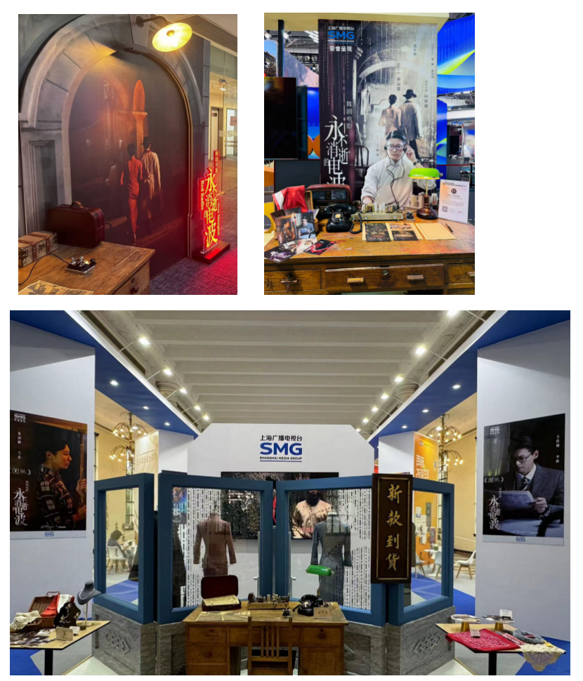 舞剧电影《永不消逝的电波》也在展会上设有专属打卡区,通过实物道具与摩斯密码等元素的组合,打造一个沉浸式的电影体验区。这不仅让观众更贴近地感受电影的魅力,也展示了SMG在电影艺术与历史题材结合上的创新尝试。