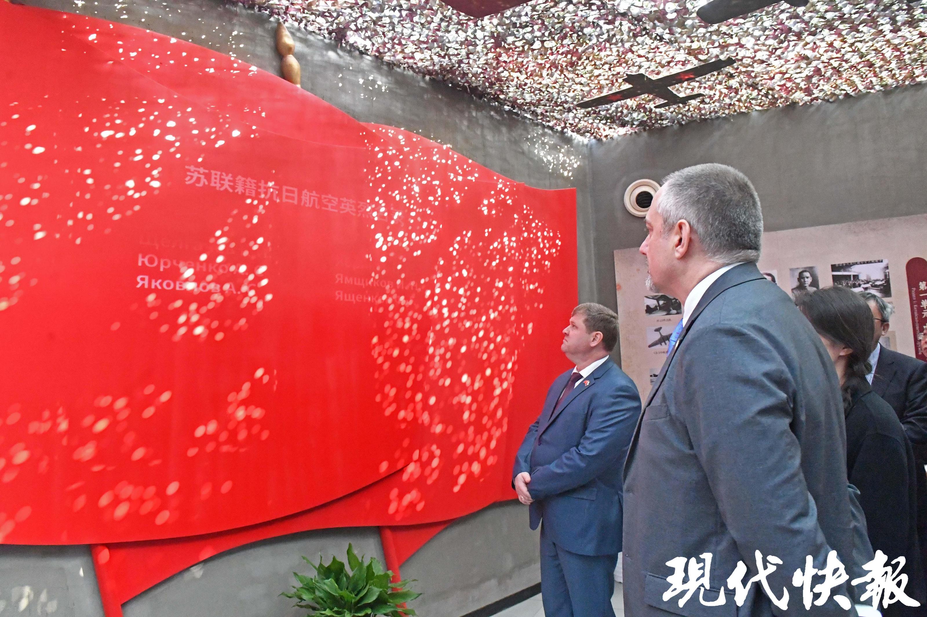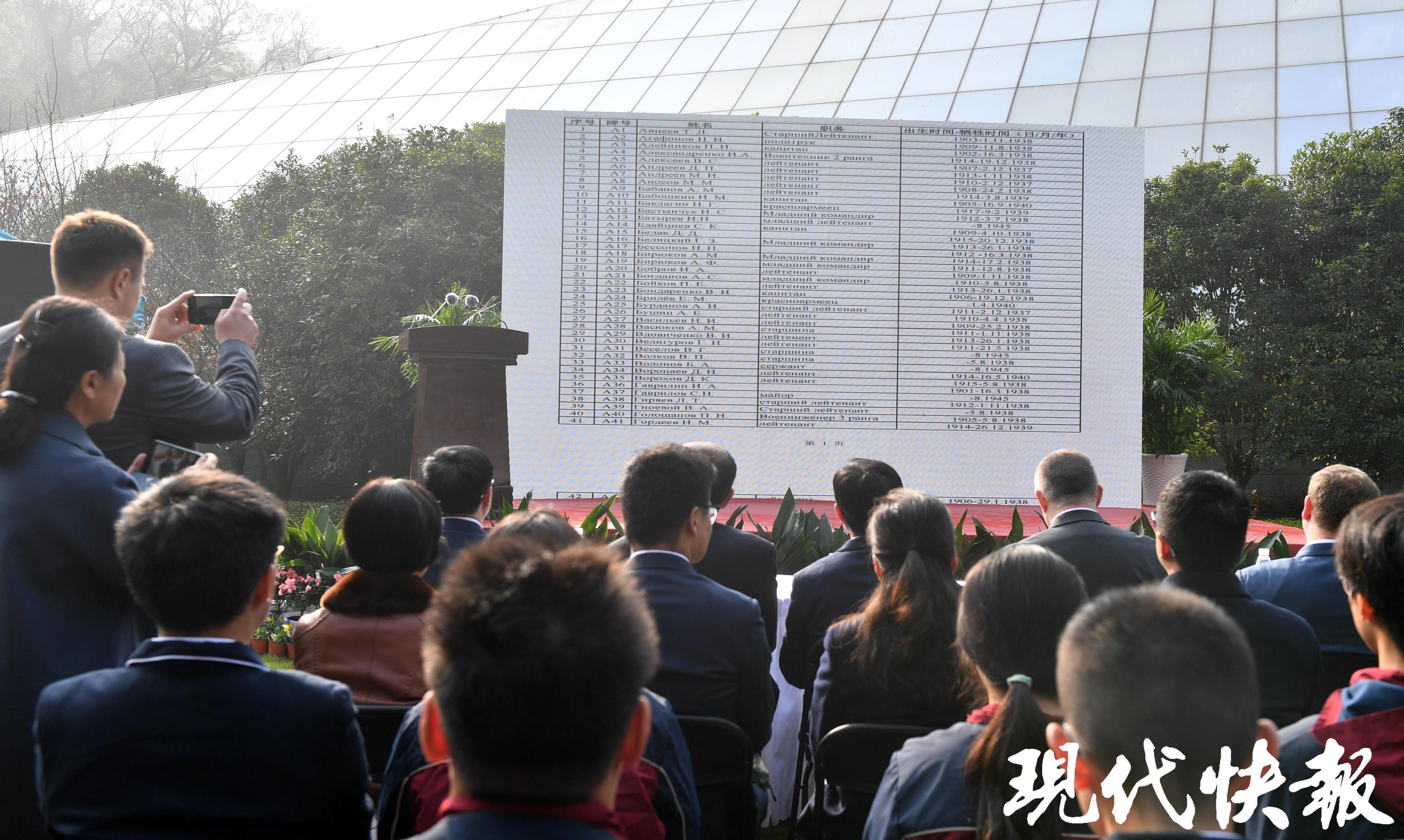 投影滚动播放在中国人民抗日战争期间牺牲的236位苏联籍抗日航空英烈名录