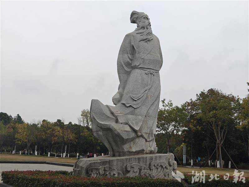 高达8米的东坡雕像矗立在遗爱湖畔。(湖北日报全媒记者曹雯摄)