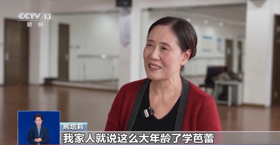 熊培莉:我家人说这么大年龄了学芭蕾,我说我喜欢我也想去练练,然后我就跟着老师学。