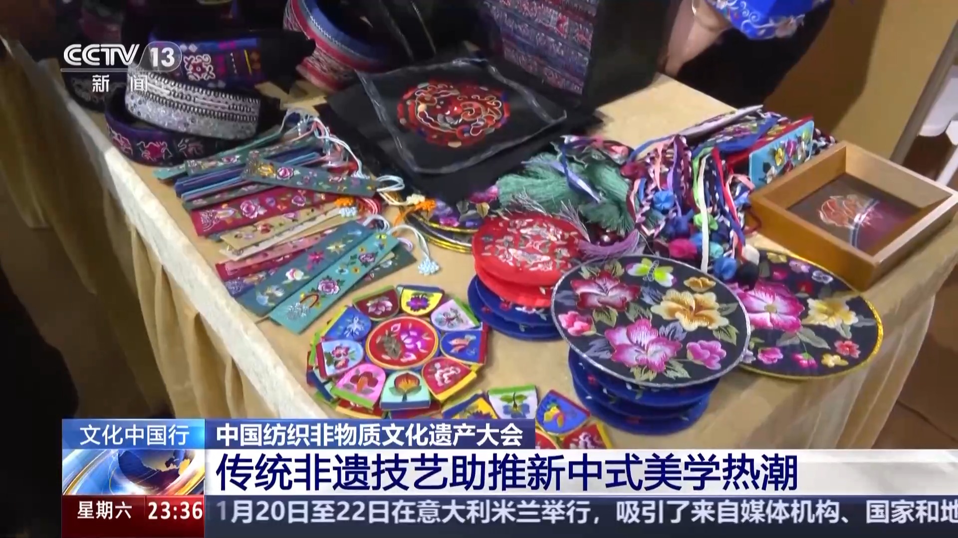 在本届纺织非遗大会上,来自苗族、畲族、彝族、黎族、蒙古族、羌族、傣族等十个少数民族的非遗传承人,向观众展示了运用传统纺织非遗技艺打造的文化创意产品。